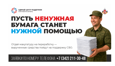 Средства, полученные от переработки макулатуры, будут направлены на поддержку СВО, пояснили в Минтербезе Прикамья.